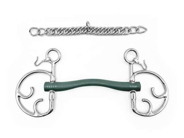 This mouthpiece has a small tongue relief to be more gentle to the tongue. The small tongue relief, combined with the gentle material, makes this bit a suitable option for horses with a sensitive tongue who can open their mouth, pull the reins, and move the tongue freely.