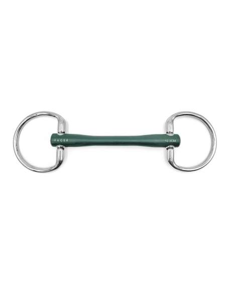 This mouthpiece is slightly thinner in the middle, allowing for a gentler fit on the tongue without excessive pressure on the bars or palate. The shape, combined with the gentle material, makes this bit a suitable option for horses with sensitive bars and palate who can be worried in the mouth, and throw their head up when you take the reins. This mouthpiece is suitable for a wide range of horses.